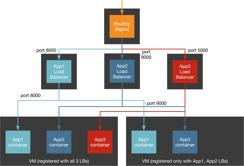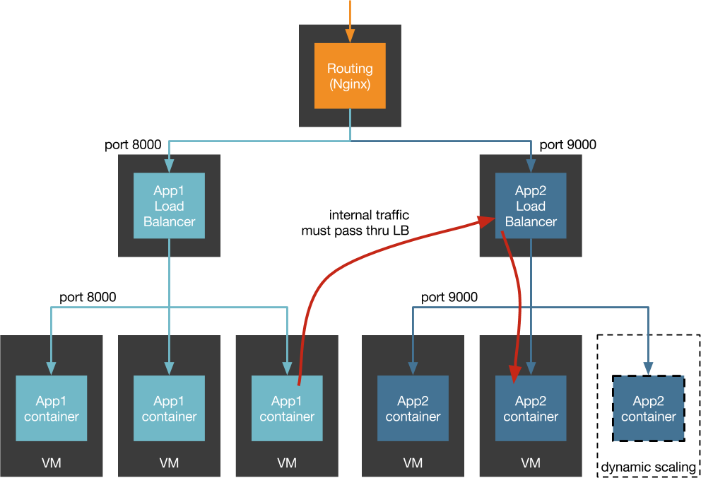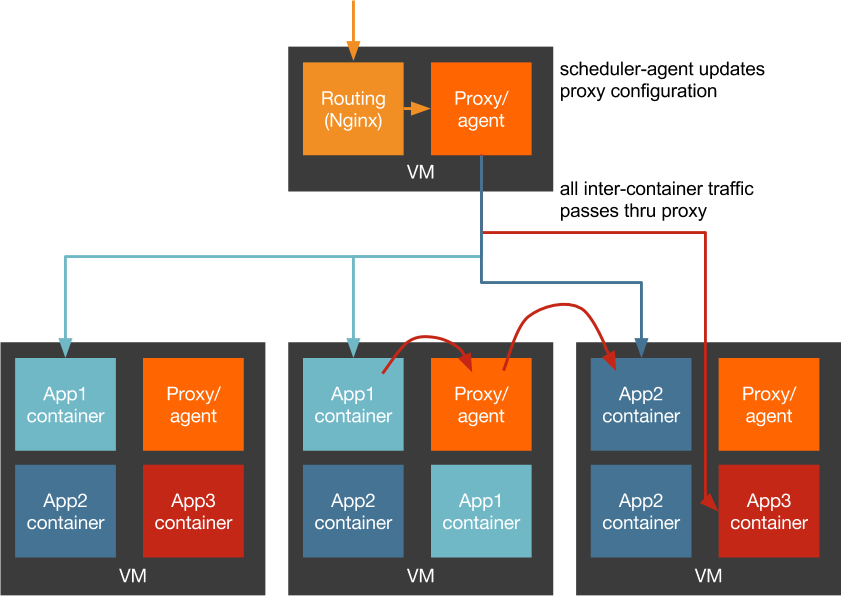 | Extra network hop from LB or local proxy | Direct container-to-container commmunication |